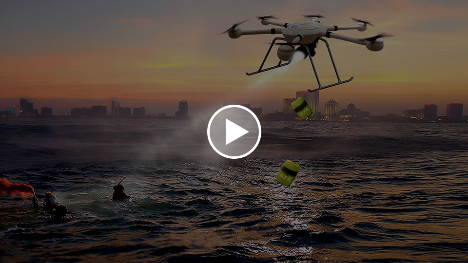 T60 rescue drone is composed of aircraft, ground station, payloads, remote control and accessories. The ground station broadcasts live rescue status to give rescuers decisions; remote controller extends the range to achieve 10km ultra-long-distance rescue. Through the use of the drone, it speeds up and improves the maritime rescue process, and makes smart & leading rescue service for the world.